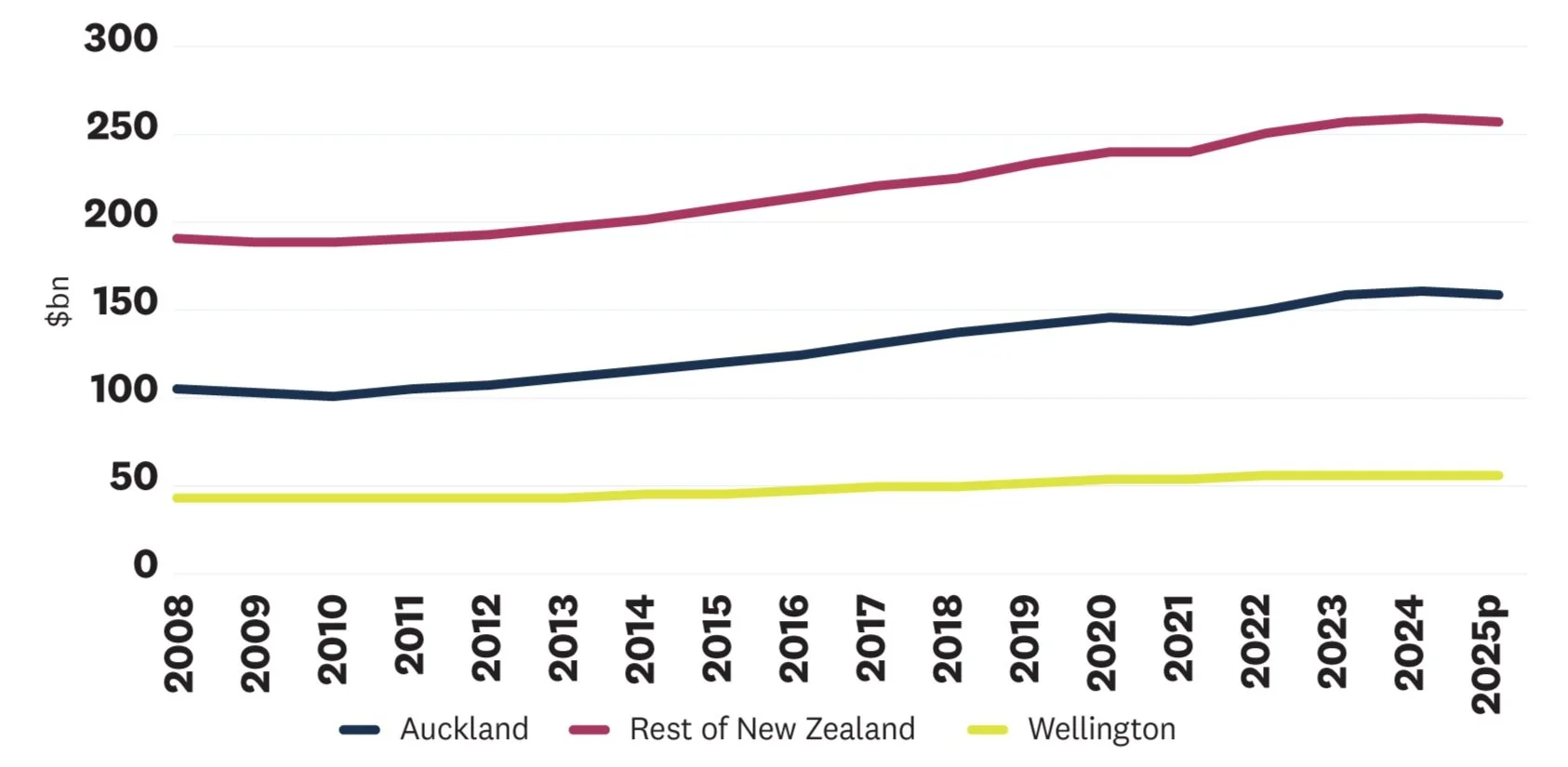 Auckland’s contribution to New Zealand’s GDP continues to increase - from 34% at the end of GFC in 2010 to 38% in 2024.