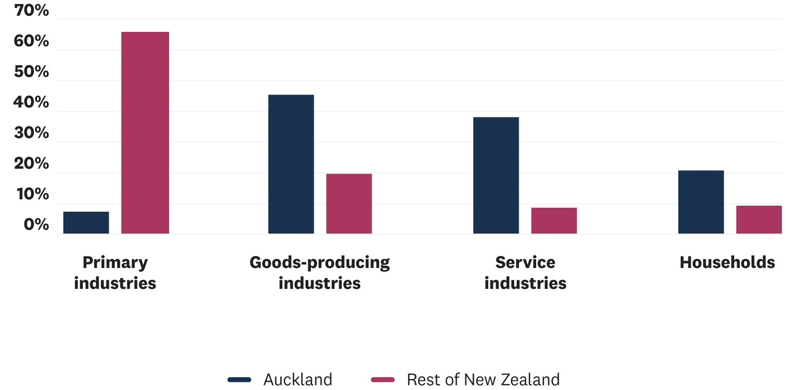 This is partly driven by the industry mix. Nearly 60% of New Zealand’s emissions are produced by the primary industries, of which there is only a very small amount in Auckland.
